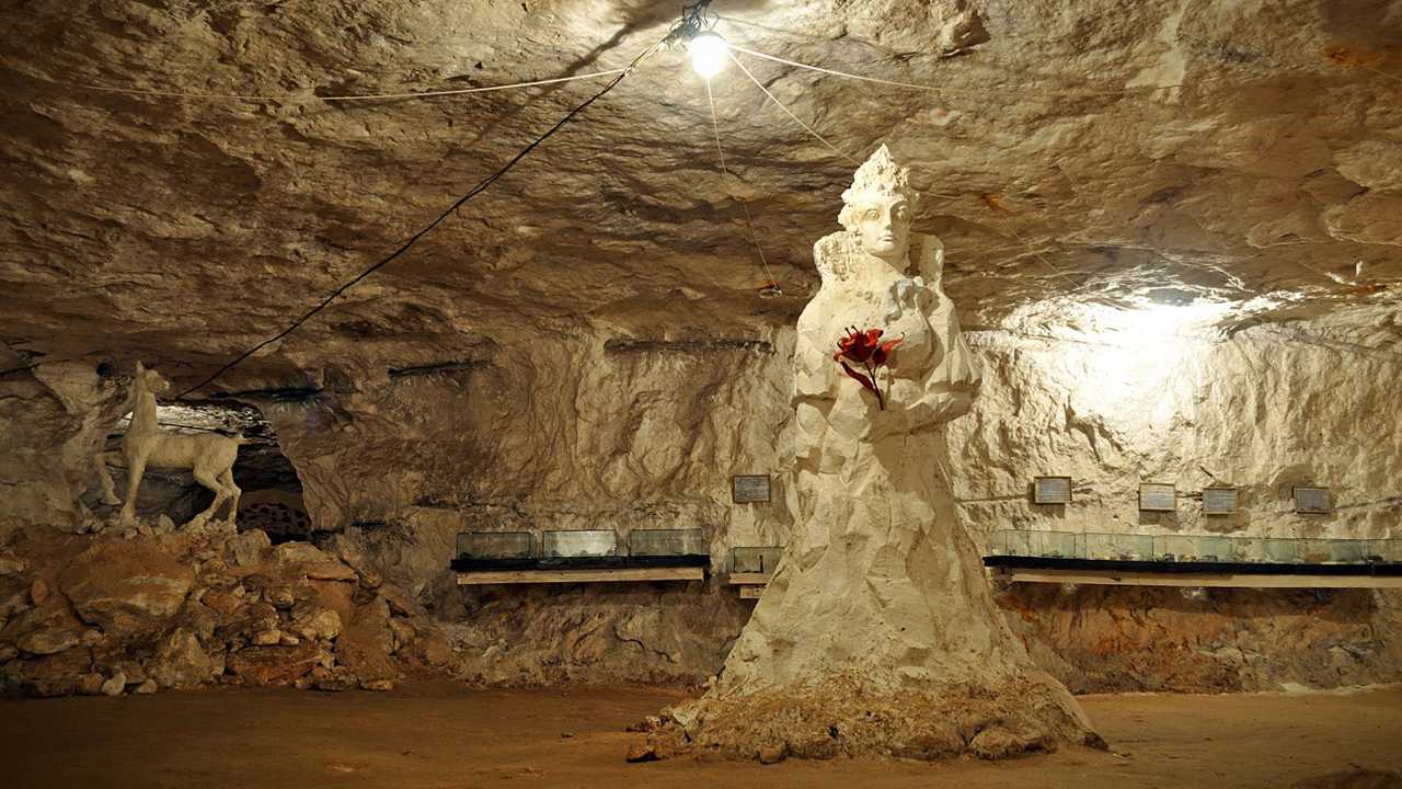 В Пешелани, в действующей шахте на глубине 70 метров создан удивительный музей. Необычное начинается уже на поверхности, у подножья гипсовой горы. Вы облачаетесь в непривычную одежду: шахтерскую куртку, каску с фонариком и спускаетесь в таинственный подземный мир. Величественная хозяйка белой горы откроет перед вами свои сокровища. Здесь уникальная коллекция минералов, диковинные поделки из камня, созданные народными умельцами.
