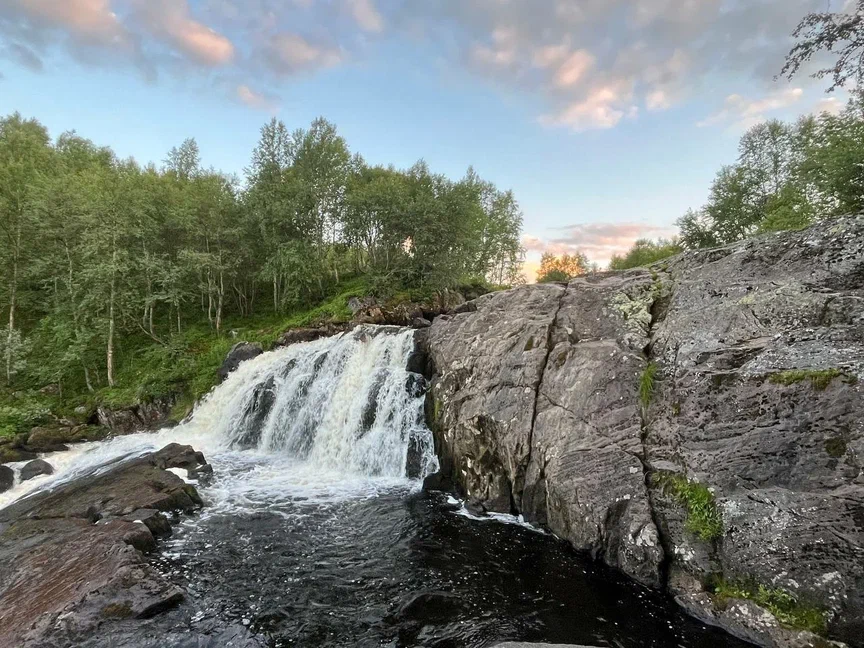 Следующей остановкой на нашем маршруте будет водопад на реке Западная лица, в летний период там возможно увидеть летающую Семгу.
