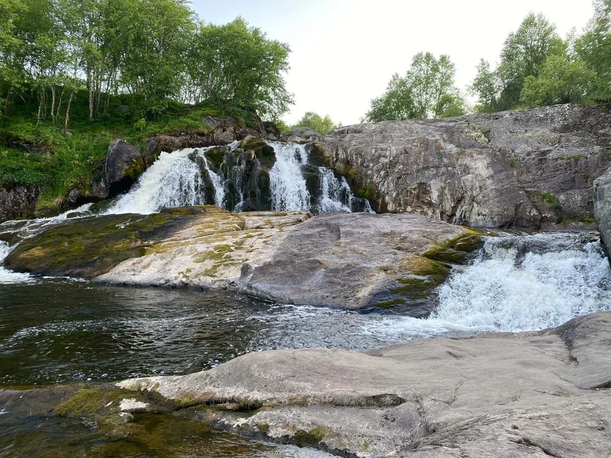 Следующей остановкой на нашем маршруте будет водопад на реке Западная лица, в летний период там возможно увидеть летающую Семгу.