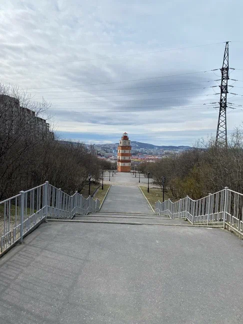 Мемориальный комплекс морякам, погибшим в мирное время. Возле Маяка расположен фрагмент знаменитой подводной лодки «Курск».