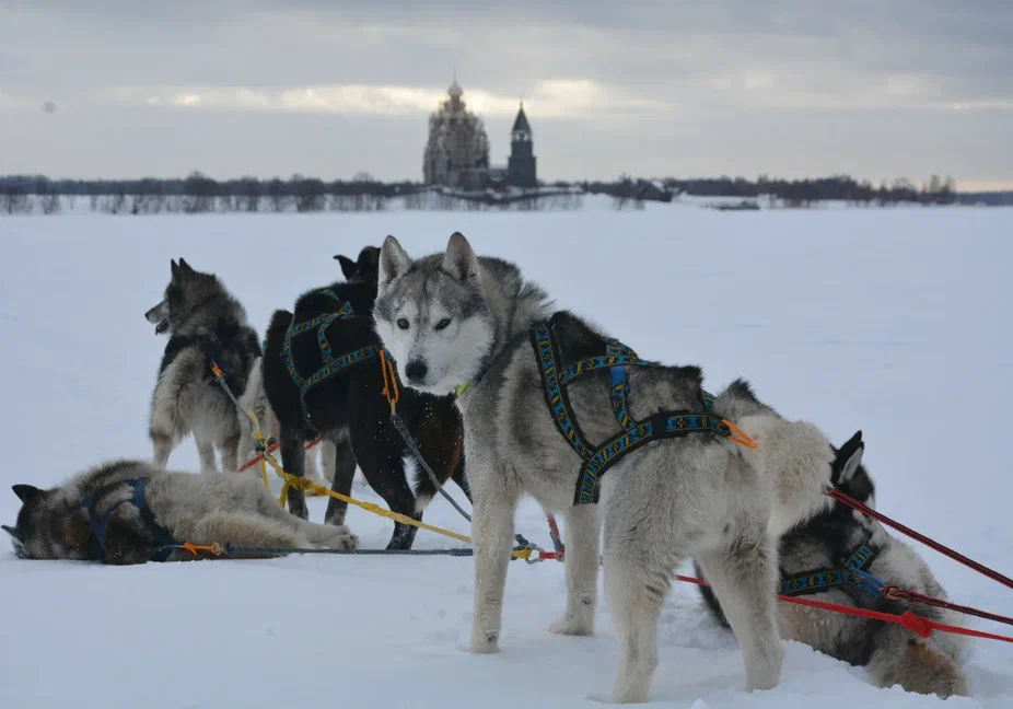 Посещение питомника ездовых собак. Удивительные хаски всегда готовы позировать для фото в приятной компании.